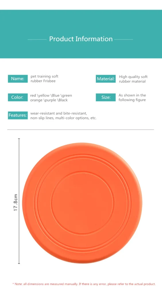 - Size: Diameter 17.8 cm – Perfect for medium-sized dogs, easy to grip, throw, and retrieve.