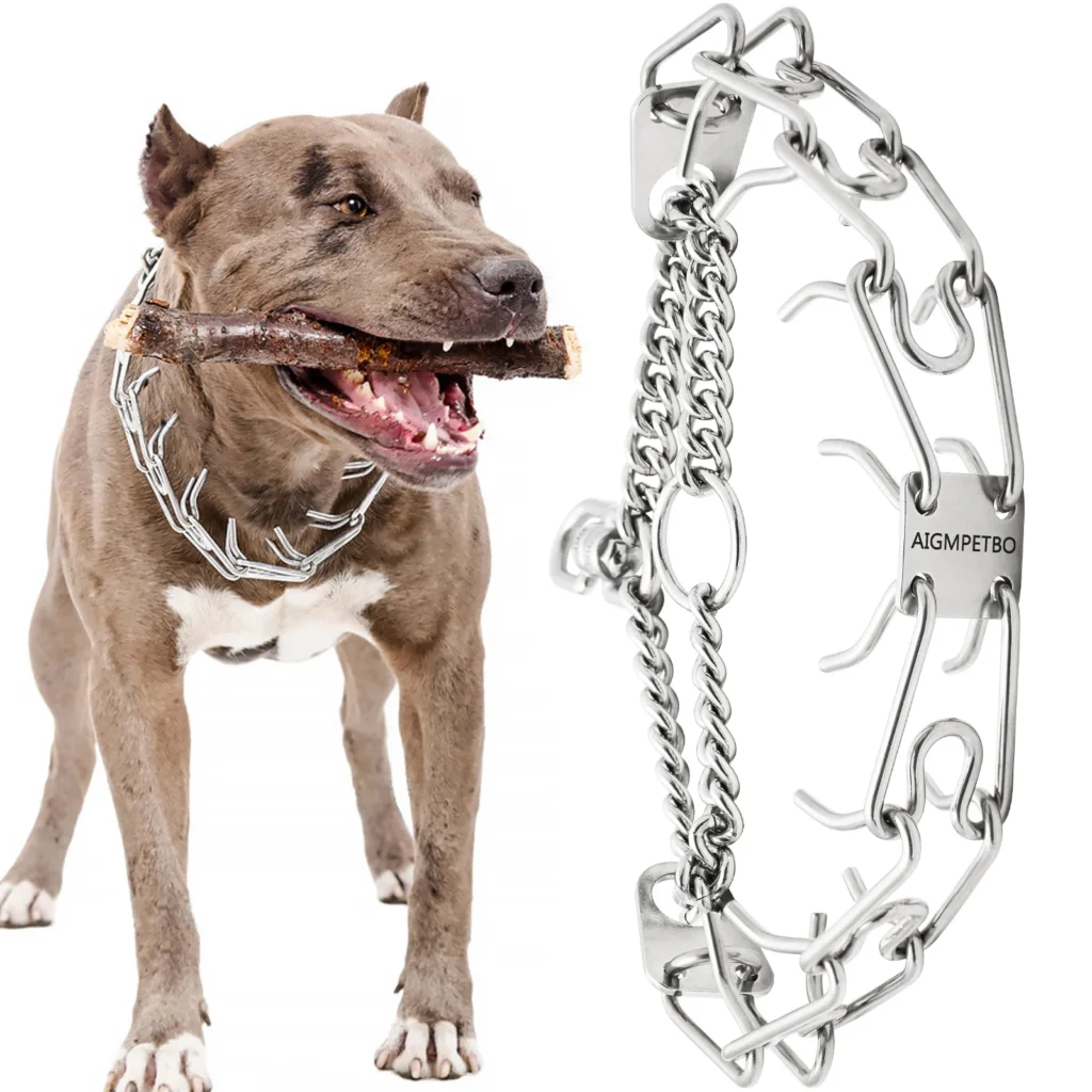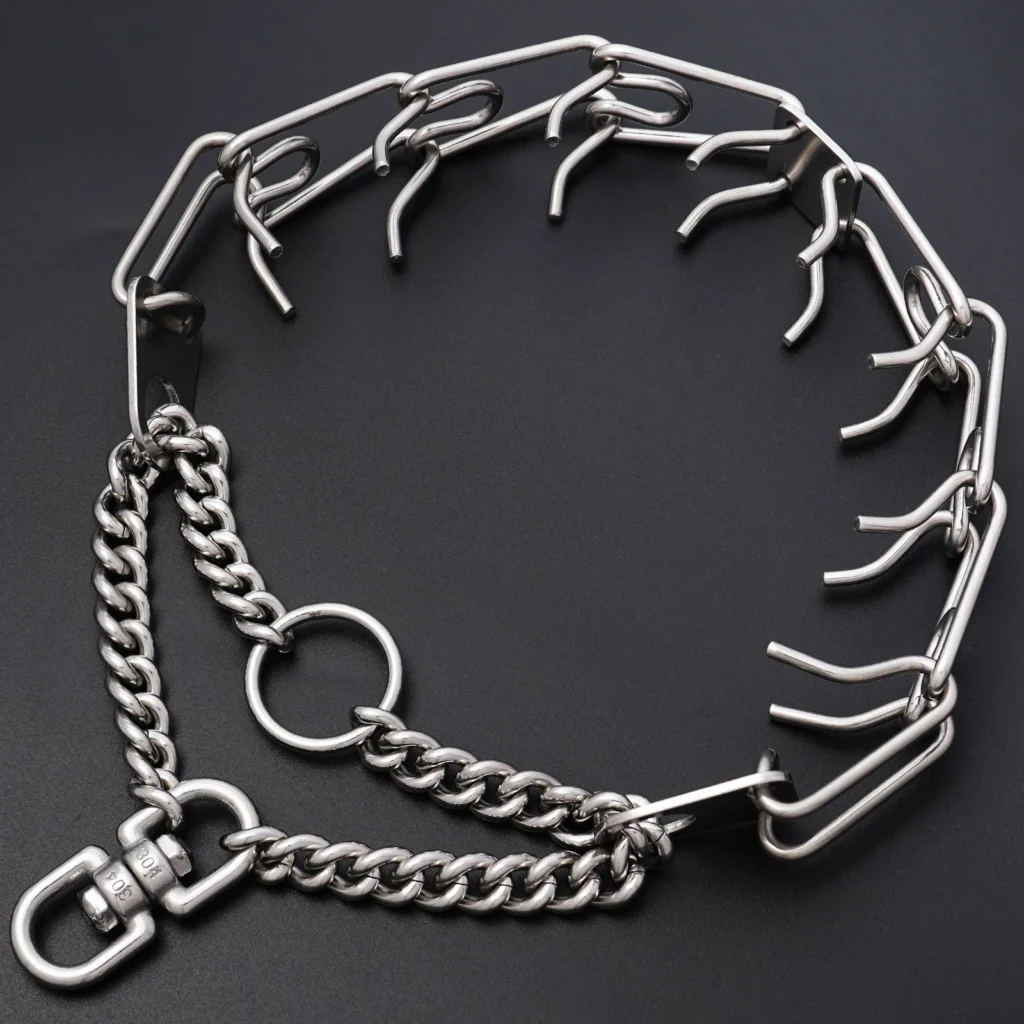- Prong collars for dogs have a silver coating for links that can provide a stable usage period for your dogs.